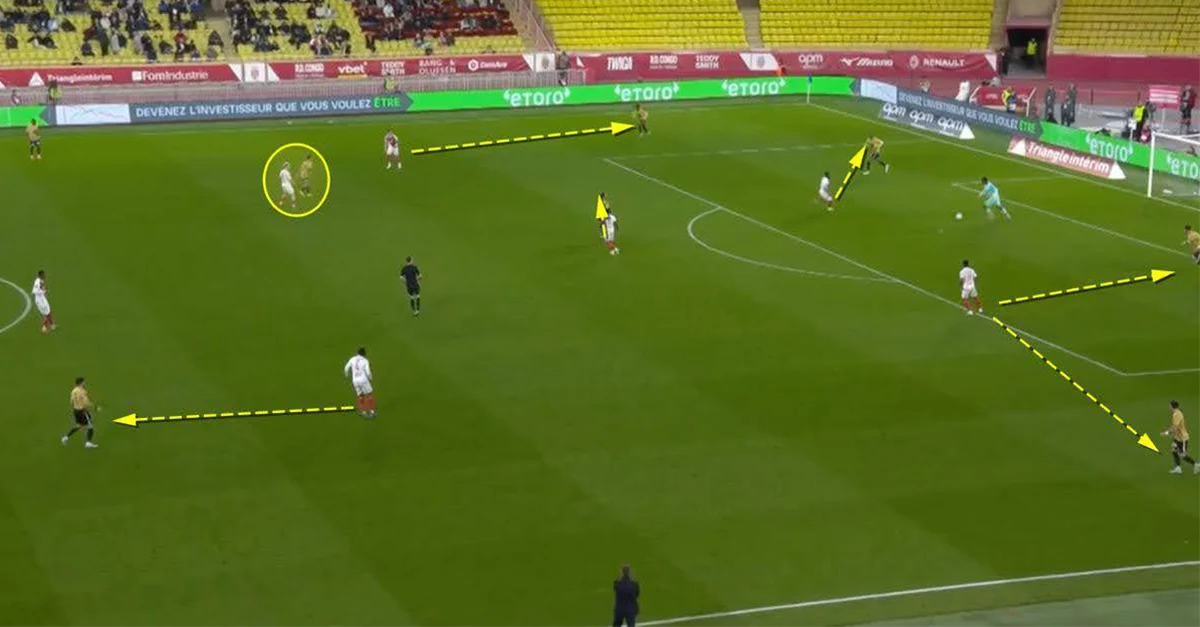 Разнообразие открываний помогает команде взаимодействовать разными способами и запутывать соперника. Структура приносит большую пользу, ведь ранее именно Головин запускал прессинг. С сочетаниями такого типа «Монако» не проигрывает восемь матчей подряд.