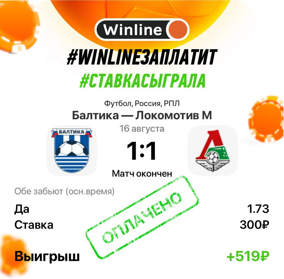 Я поставлю на этот исход 300 рублей. В прошлый раз я поставил такую же сумму на линию «обе забьют – да/нет)» в матче «Локомотив» – «Балтика», и она успешно зашла.