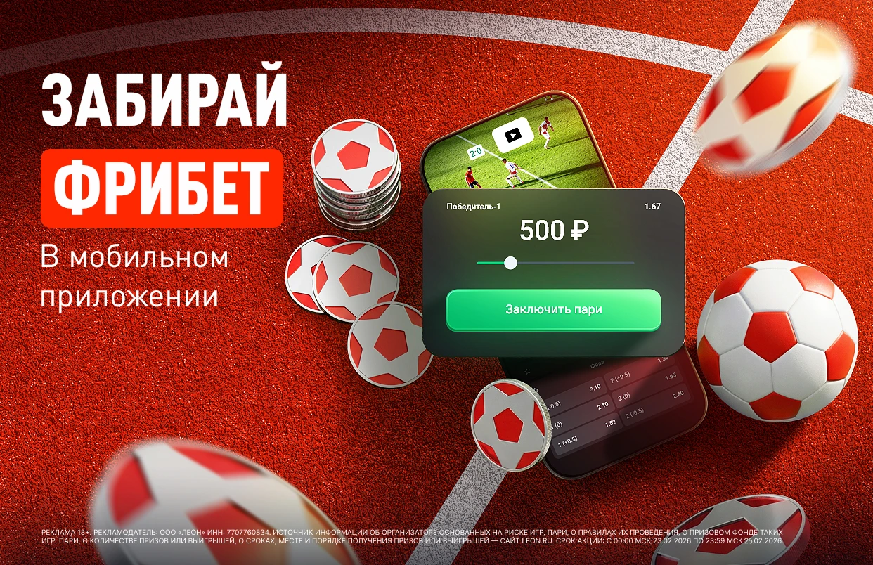 Реклама 18+. Рекламодатель: ООО «Леон» ИНН: 7707760834. Источник информации об организаторе основанных на риске игр, пари, о правилах их проведения, о призовом фонде таких игр, пари, о количестве призов или выигрышей, о сроках, месте и порядке получения призов или выигрышей — сайт Leon.ru. Срок акции: с 00:00 МСК 23.02.2026 по 23:59 МСК 26.02.2026.