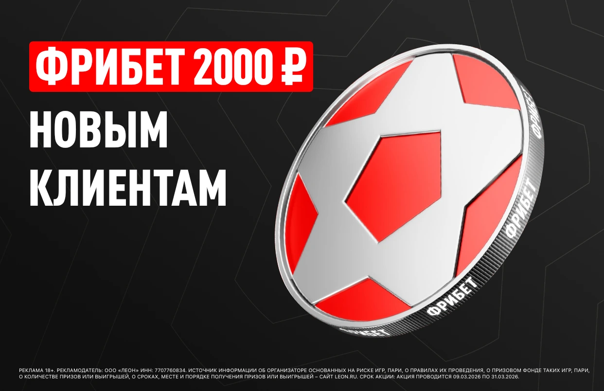 Реклама 18+. Рекламодатель: ООО «Леон» ИНН: 7707760834. Источник информации об организаторе основанных на риске игр, пари, о правилах их проведения, о призовом фонде таких игр, пари, о количестве призов или выигрышей, о сроках, месте и порядке получения призов или выигрышей – сайт Leon.ru. Срок акции: Акция проводится 09.03.2026 по 31.03.2026.