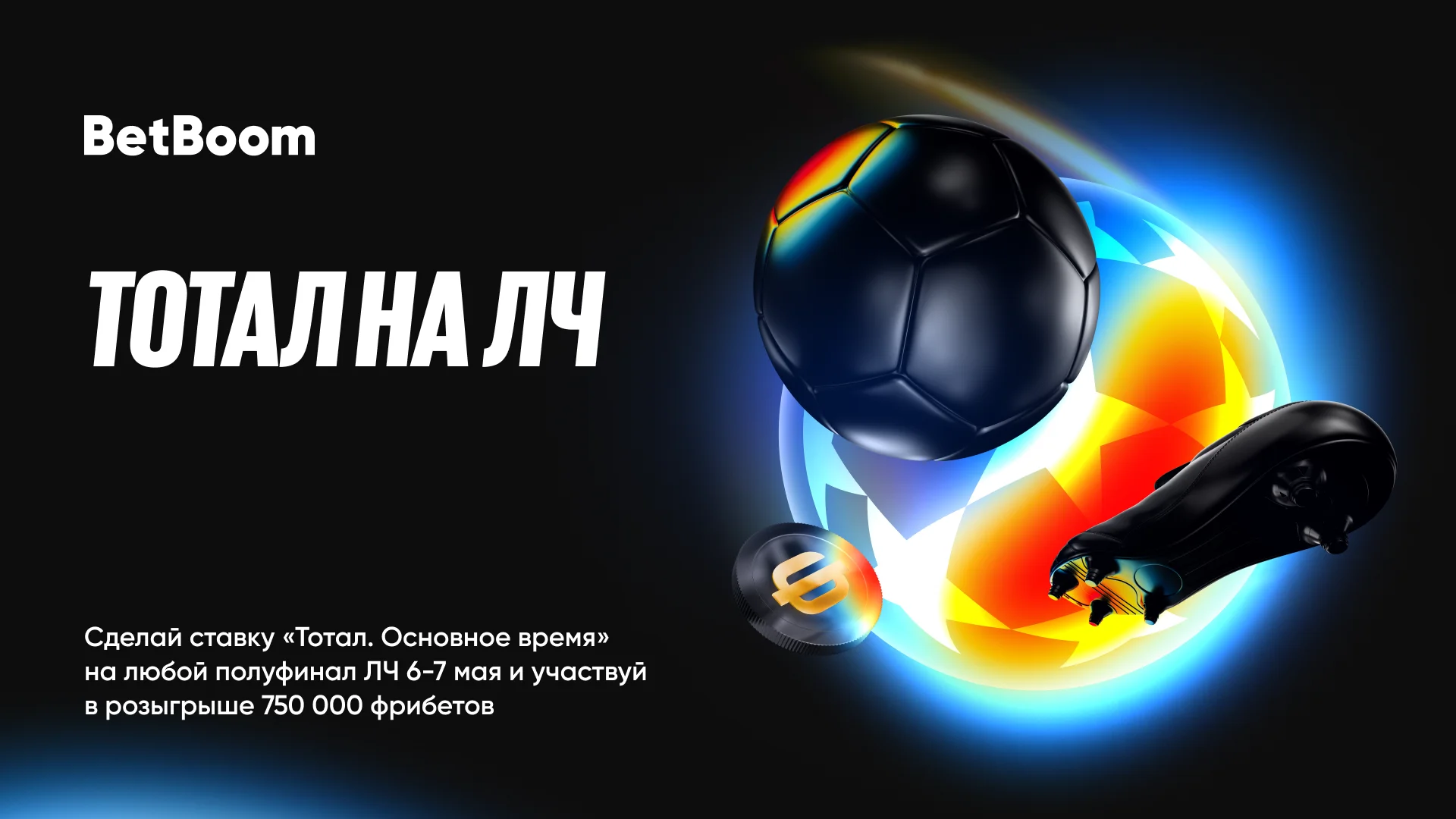 Фрибеты до 100 000 рублей за ставки на тотал в полуфиналах ЛЧ от БК BetBoom