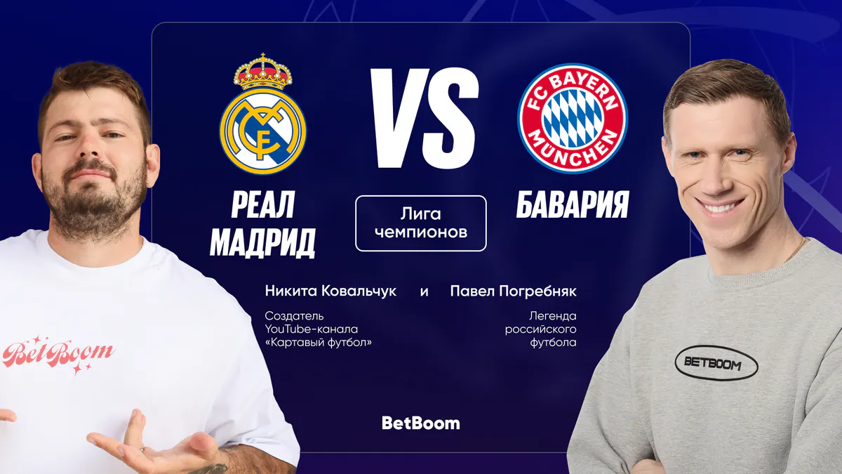 Павел Погребняк расстроен тем, что «Реал» и «Бавария» встретились уже в четвертьфинале, и отмечает результативность мюнхенского клуба в Бундеслиге. Павел также отмечает, что исход противостояния может повлиять на битву за «Золотой мяч» для Килиана Мбаппе и Харри Кейна. Что касается ставки на матч в Мадриде, то амбассадор BetBoom уверен, что стоит ставить на тотал более 3 забитых мячей.