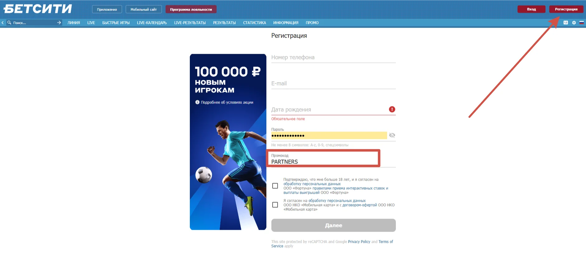 Зарегистрироваться на сайте или в приложении БК, активировав промокод PARTNERS