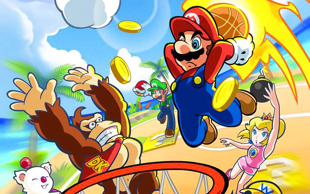 Куда же без баскетбола. Это единственная игра, где Марио берёт оранжевый мячик и бросает трёшки в корзину. По сюжету герой уводил своих друзей в лес и играл там в стритбол. При этом искусственный интеллект на сопернике сложного уровня, и одолеть бездушную машину не так-то просто.