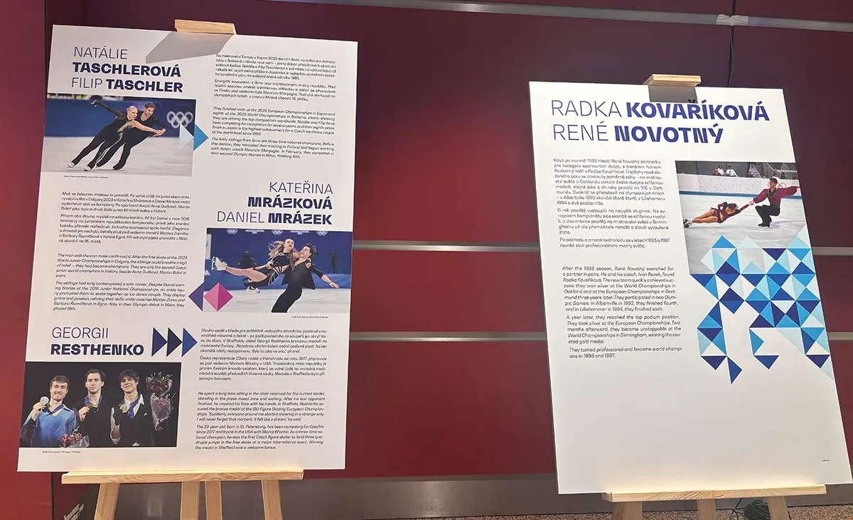 В перерывах на заливку льда на арене тоже есть чем заняться: в холле организовали мини-выставку, посвящённую легендарным чешским фигуристам. Её можно посмотреть бесплатно.
