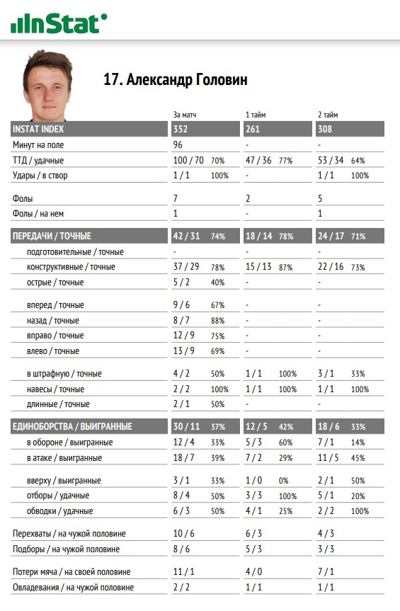 Высокий показатель ТТД Головина ценен тем, что большую часть матча футболист играл на позиции атакующего полузащитника. Обычно большим набором действий хвастаются более приземленные по расположению на поле спортсмены.