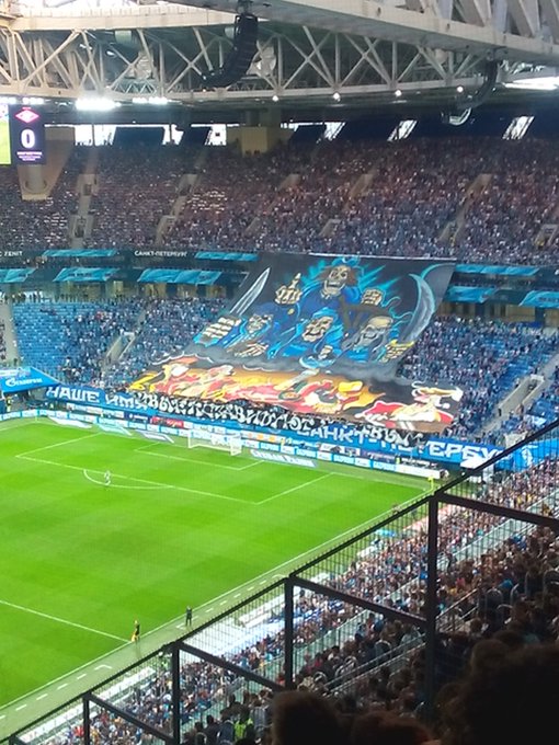 Вернее, отличился не сам клуб, а его болельщики, подготовившие к игре с заклятыми врагами на новом стадионе не один, а сразу два масштабных перфоманса. Второй прошел, как по маслу – огромный и красивый баннер с пиратскими мотивами. Так держать! Хоть красно-белые и обозвали картинку «пиратами питерских болот».