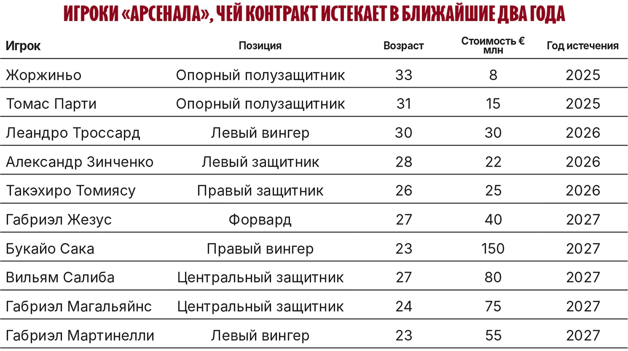 Но сначала следует озаботиться другой проблемой. У десятерых игроков «Арсенала» в ближайшие пару лет истекает контракт. Хорошая пища для размышлений: кого-то нужно сохранить, а кого-то, пока есть такая возможность, поскорее продать.