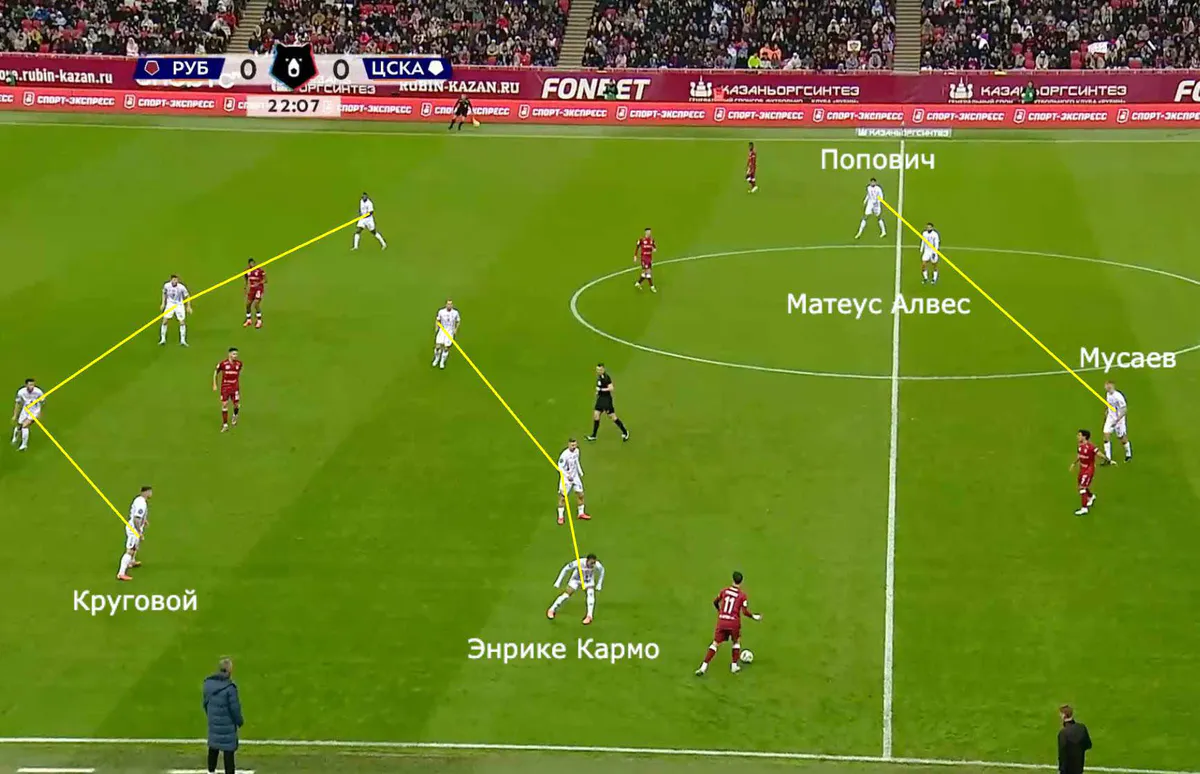 В первом тайме ЦСКА допустил по своим воротам семь ударов и сделал столько же касаний в штрафной соперника. Стартовый план должен был привнести свежесть, но только поставил команду в неудобное положение.