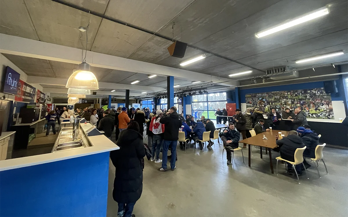 По этой или по причине природного оптимизма местных фанов ваш спецкор никакого уныния на арене перед матчем 26-го тура с фаворитами из топ-3 таблицы «Сент-Трюйденом» не обнаружил. Вполне себе оживлённый фан-шоп (самый ходовой товар — футболка за € 52,5), очереди к киоску Bubba с крокетами и, конечно же, шум-гам в Lieje's Sportcafé – сердце, как считается, фанатской культуры клуба.