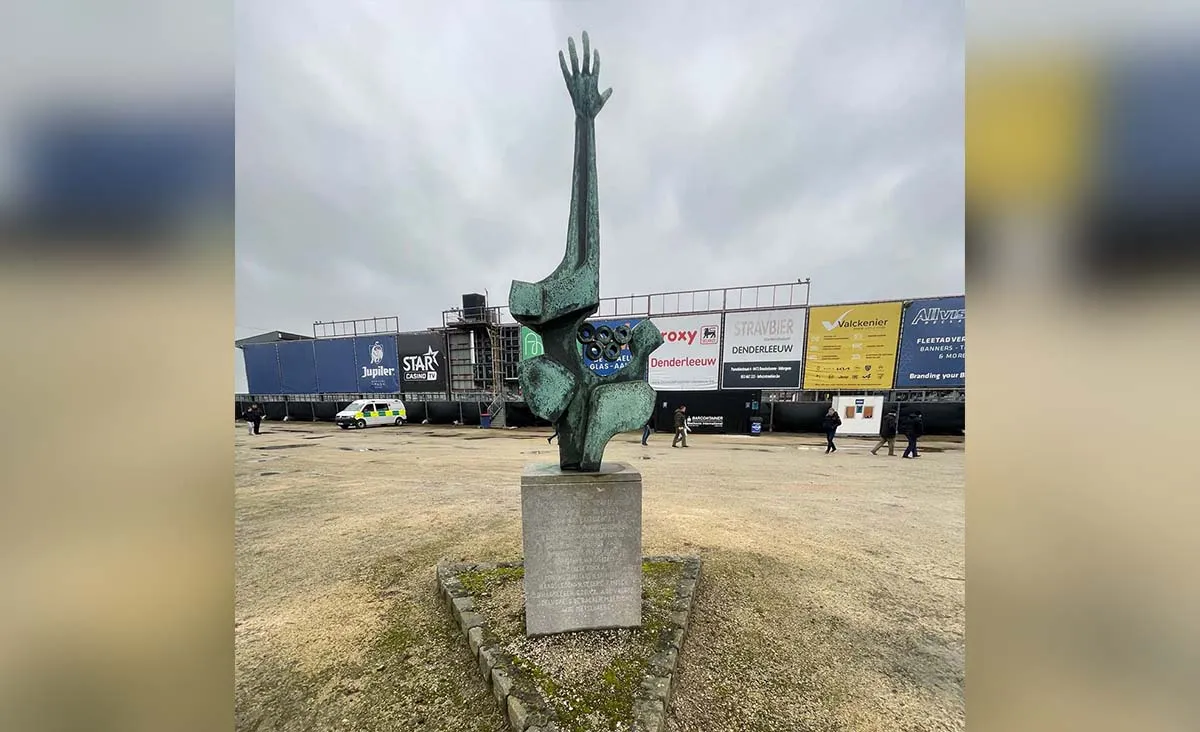 Перед ареной натыкаешься на стелу — поднятая вертикально вверх рука с почему-то олимпийскими кольцами. Надпись гласит, что именно здесь 18 августа 1973 года открыт первый в городе стадион. К настоящему моменту на этом месте располагается вторая, так сказать, инкарнация той любительской постройки для низших дивизионов. Нынешний Dender Football Complex имеет три крытых трибуны и вмещает примерно 6,5 тыс.
