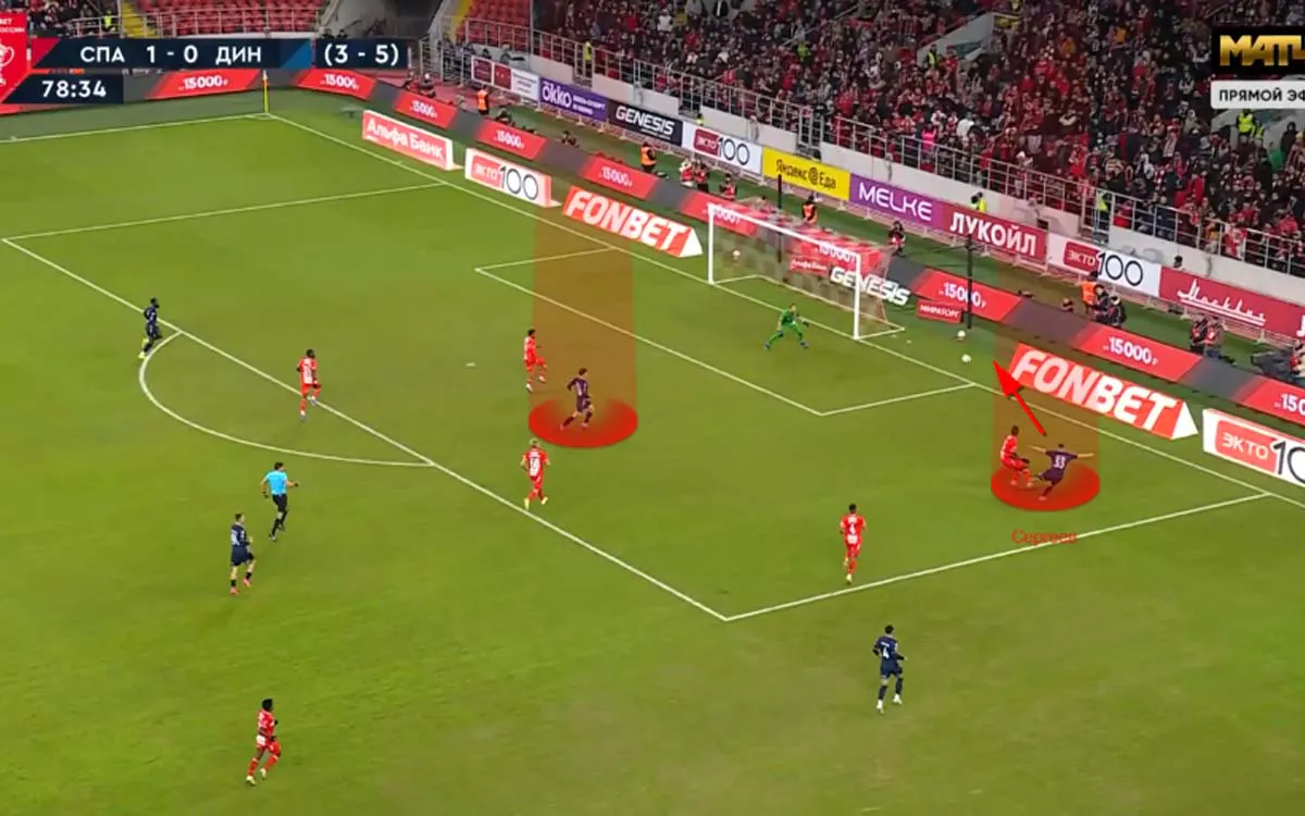 Всю зиму «Динамо» выстраивало игровой процесс по схеме 4-4-2 со связкой Тюкавин-Сергеев на острие. Оба действовали в своеобразном «симбиозе» – Иван отвечал за прессинг, дежурил в штрафной, освобождал под партнёра зону, пока пластичный Константин опускался чуть ниже, охотнее шёл в дриблинг и взаимодействовал с флангами. Эффектно? Да. Но эффективно ли?…