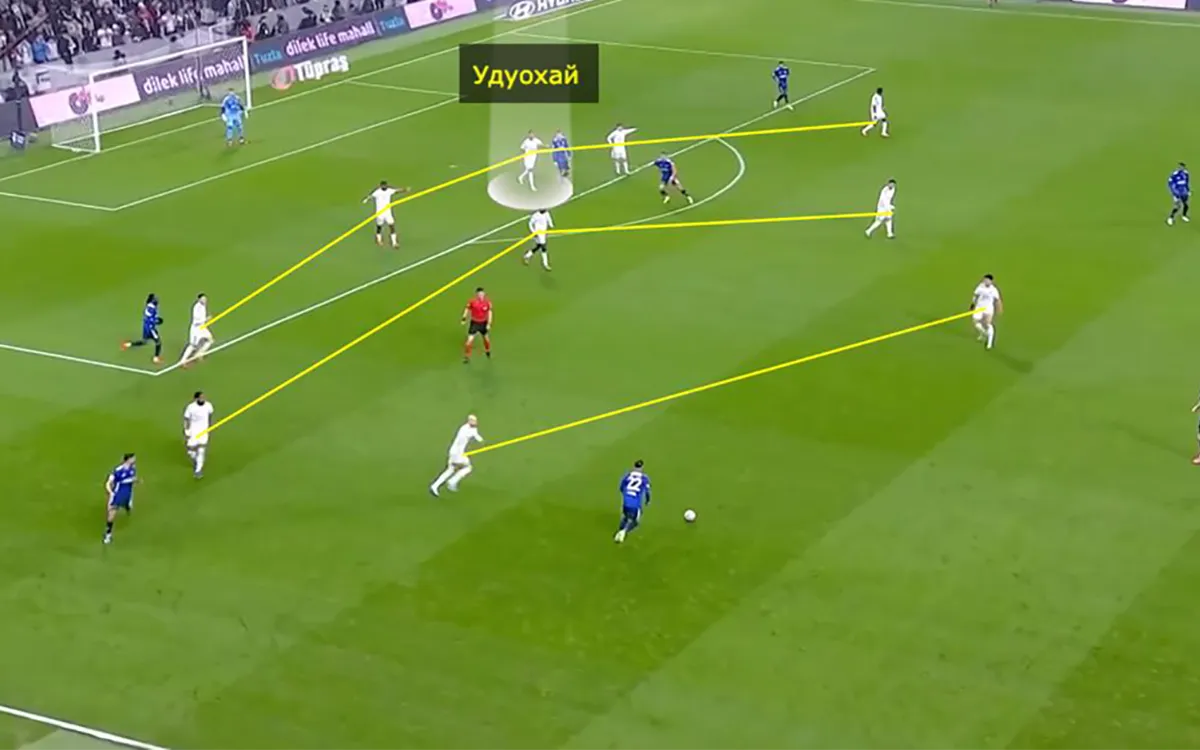 Удуохай может выполнить тактическое задание в любом амплуа в центре обороны. В том числе — в схеме с более насыщенными сочетаниями, где рядом играют два партнёра.
