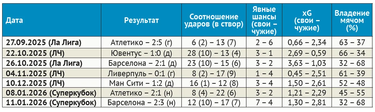 При этом провальной работу Алонсо в Мадриде не назовёшь. 24 победы, шесть поражений и четыре ничьих – достойный результат. Другое дело, что «Реал» не прогрессировал и спотыкался в матчах с топ-соперниками (см. таблицу). 2:5 от «Атлетико», проигрыши «Ливерпулю» и «Ман Сити» в Лиге чемпионов и «Барселоне» в финале Суперкубка Испании лишили тренера репутации «волшебника», которую он заработал в «Байере».
