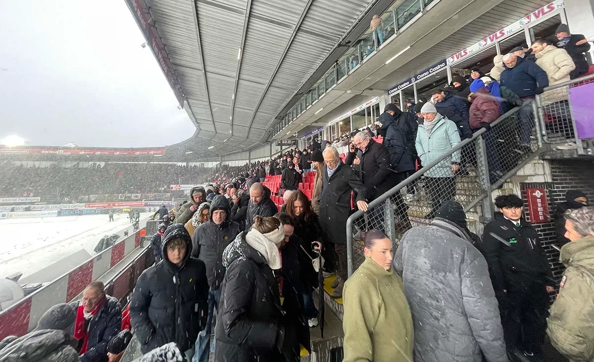 И вот эту битву двух воскресших андердогов могли бы увидеть 11 тысяч, до отказа забившие Het Kasteel, если бы не снегопад, начавшийся за полчаса до встречи и усиливавшийся с каждой минутой. Ну как снегопад… По меркам РПЛ не было ни одной причины, чтобы не провести эту игру: взяли оранжевый мяч – и вперёд. Голландцев же хватило на семь минут. После чего судья дал команду увести игроков в подтрибунные помещения, откуда они уже не вернулись.