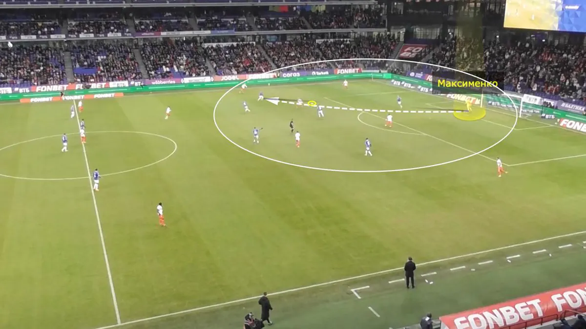 Оборонительной работы стало больше, схема розыгрыша мяча непривычно сложная. Александр не отличается стабильностью в контексте игры ногами, но в системе Карседо чаще вынужден рисковать под давлением.