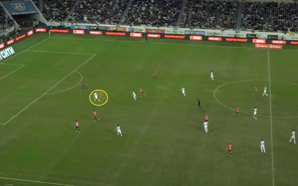 Оборонительной работы непривычно много, если сравнивать с его типичной игрой в «Локомотиве». Нагрузка провоцирует постоянные ошибки, теряется гибкость схемы.