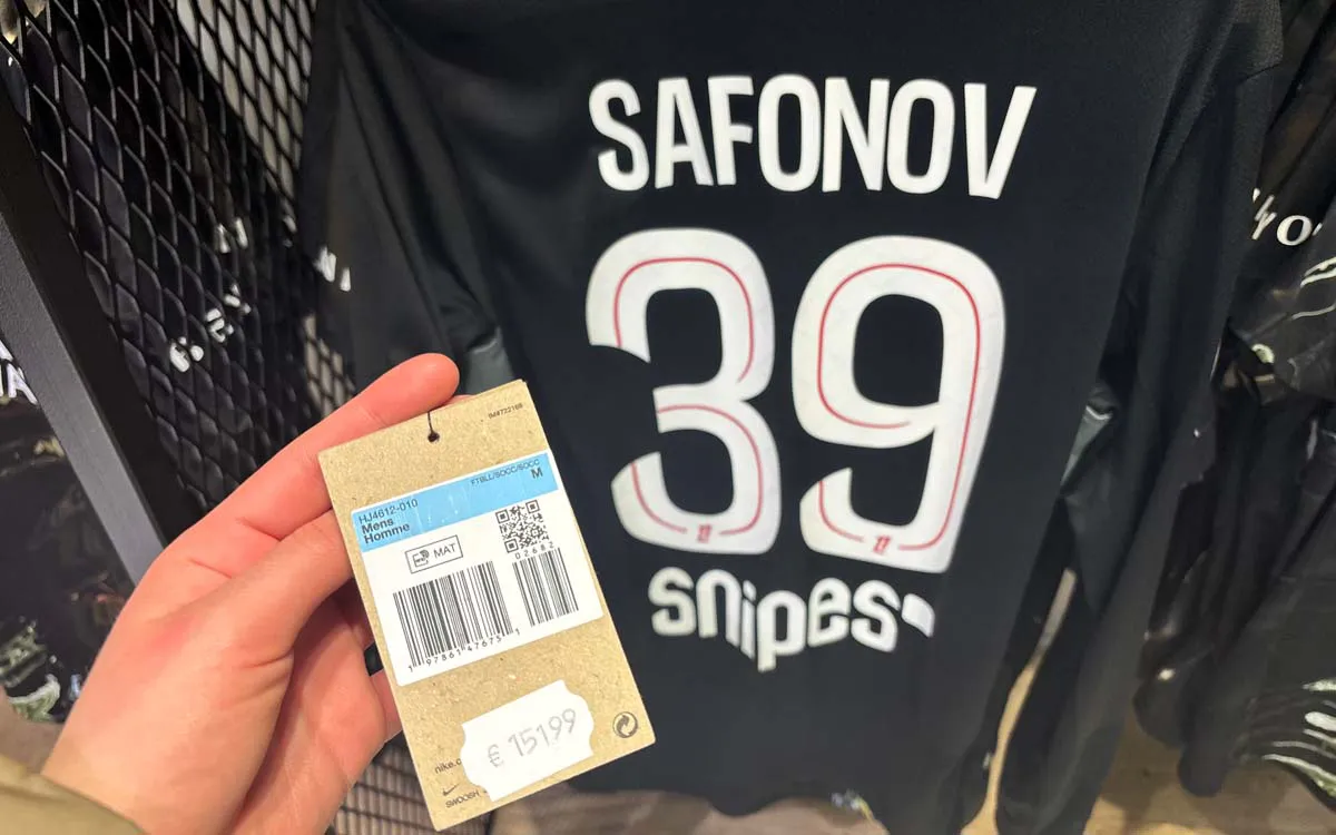 Судя по ассортименту, не так сложно догадаться, кто в «ПСЖ» главный фаворит публики. Имя Усмана Дембеле появляется на кружках и одежде чаще всего. Но вот в поисках хоть чего-нибудь, связанного с Матвеем Сафоновым, пришлось обойти оба этажа. Имя или фотографии российского голкипера, принёсшего «ПСЖ» победу в межконтинентальном кубке ФИФА, не фигурируют ни на плакатах, ни на толстовках. В итоге вратарская форма Матвея нашлась – в единственном экземпляре, почти за 152 евро (около 14 тысяч рублей).