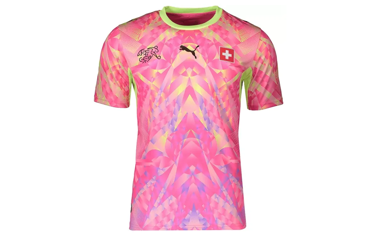 Основная форма сборной Швейцарии выглядит привычно и ничем особенно новым не выделяется. Гостевая отталкивает избытком зелёного цвета. А вот второй вратарский комплект удивил ещё сильнее. Даже слово «перестарались», наверное, не подходит.