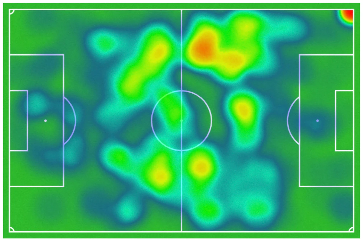 а) тепловой карты Кисляка в последних пяти матчах
