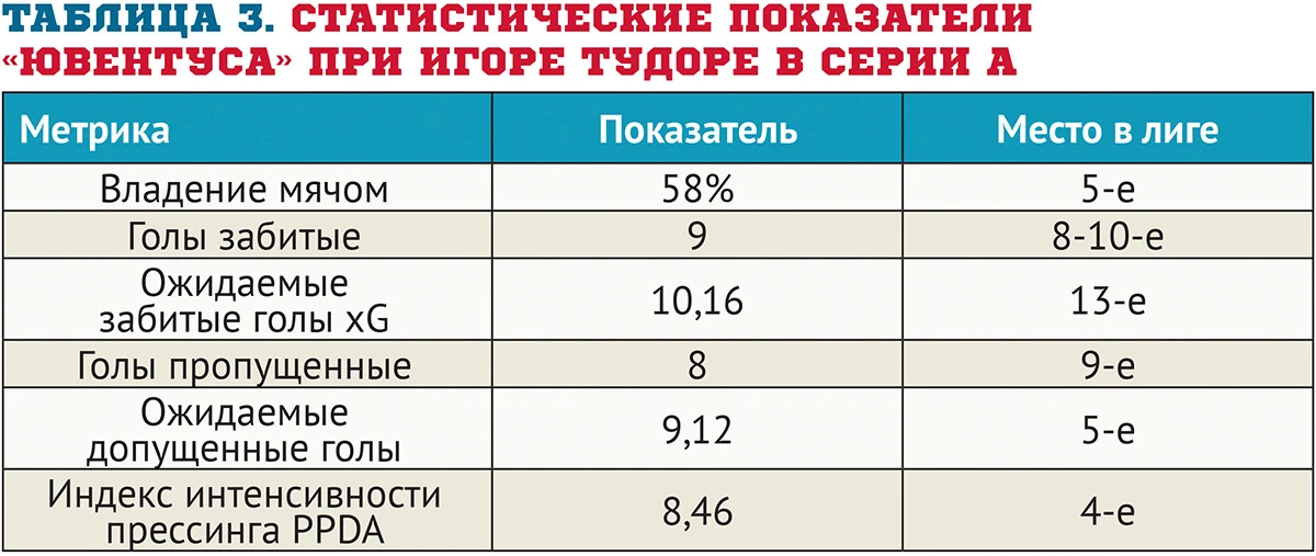 Цифры подтверждают, что эффективность игры «Ювентуса» при Тудоре была на уровне середняка. Падение в результатах подкреплено статистикой, и это очень красноречиво.