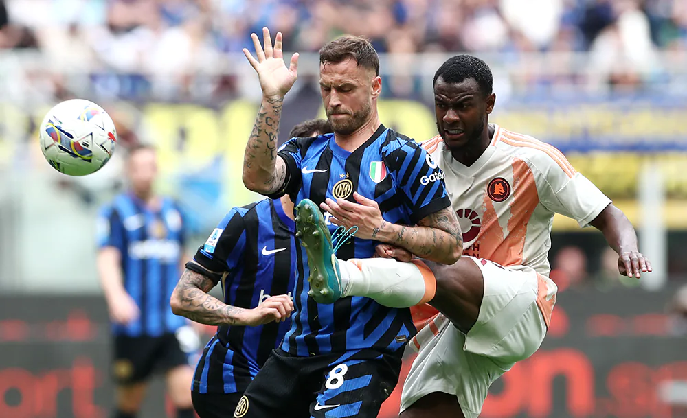 «Интер» на домашнем поле уступил «Роме» в матче 34-го тура итальянской Серии А. Встреча на стадионе «Джузеппе Меацца» в Милане завершилась со счётом 1:0 в пользу гостей.