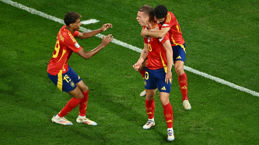 На 21-й минуте 16-летний Ламин Ямаль сравнял счёт после великолепного дальнего удара из-за пределов штрафной. Он стал самым молодым автором гола в истории крупных турниров, побив рекорд Пеле. Четыре минуты спустя Дани Ольмо вывел испанцев вперёд.