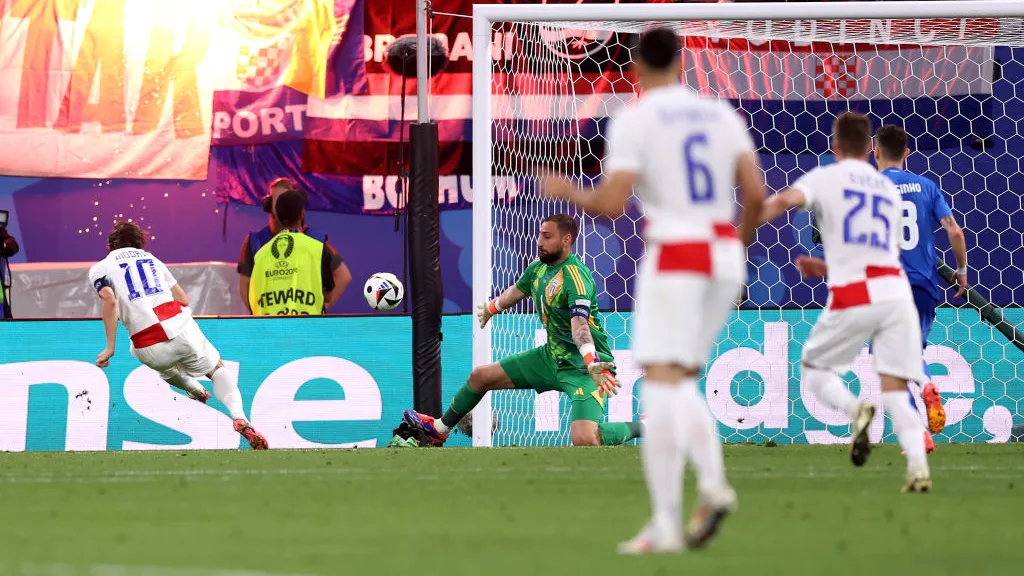Капитан сборной Хорватии Лука Модрич открыл счёт на 55-й минуте в матче третьего тура чемпионата Европы против Италии. Полузащитник мадридского «Реала» сыграл на добивании в штрафной. Встреча проходит в Лейпциге.