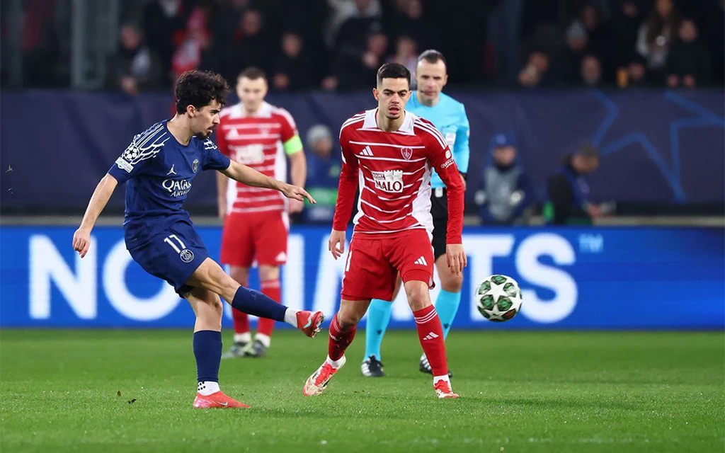«ПСЖ» обыграл «Брест» в первом стыковом матче плей-офф Лиги чемпионов. Встреча состоялась на стадионе «Стад дю Рудуру» в Генгаме и завершилась со счётом 3:0 в пользу парижан.