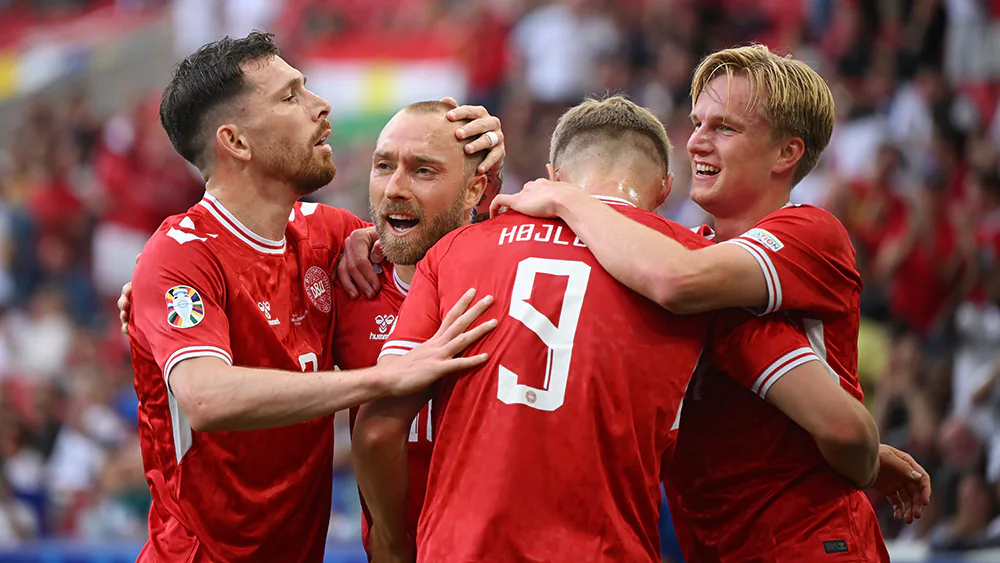 Сборная Дании минимально выигрывает у Словении после первого тайма матча Евро-2024