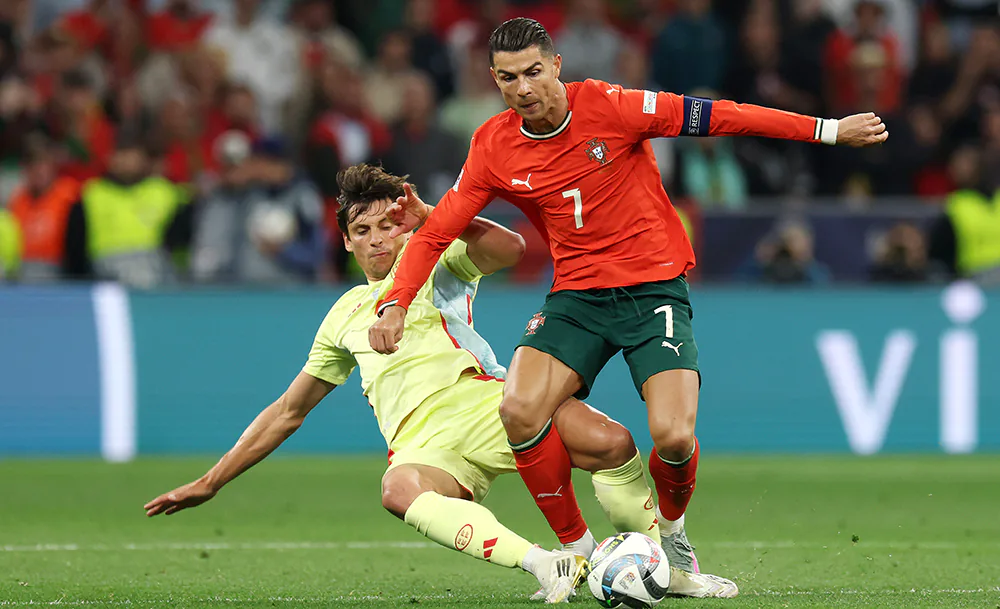 В составе португальцев забитыми мячами отметились Нуну Мендеш 26-я минута) и 40-летний Криштиану Роналду (61-я). У испанцев голы забили Мартин Субименди (21-я) и Микель Оярсабль (45-я).