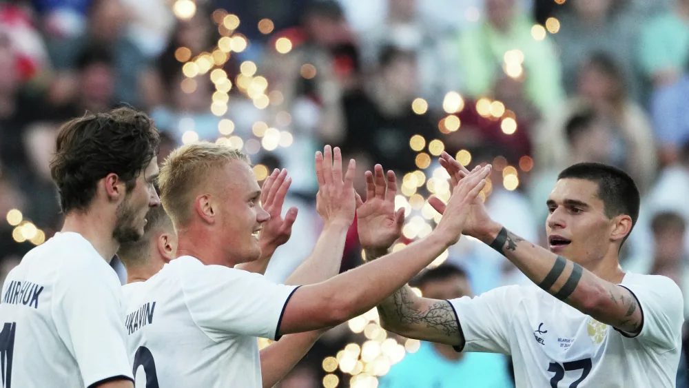 Сборная России ведёт со счётом 2:0 после первого тайма в матче с Беларусью