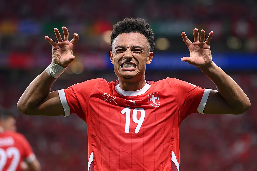 Сборная Швейцарии открыла счёт в матче с Германией в третьем туре чемпионата Европы. На 28-й минуте отличился Дан Ндой с передачи Ремо Фройлера. Встреча проходит во Франкфурте. Игру обслуживает бригада арбитров во главе с Даниэлем Орсато из Италии.