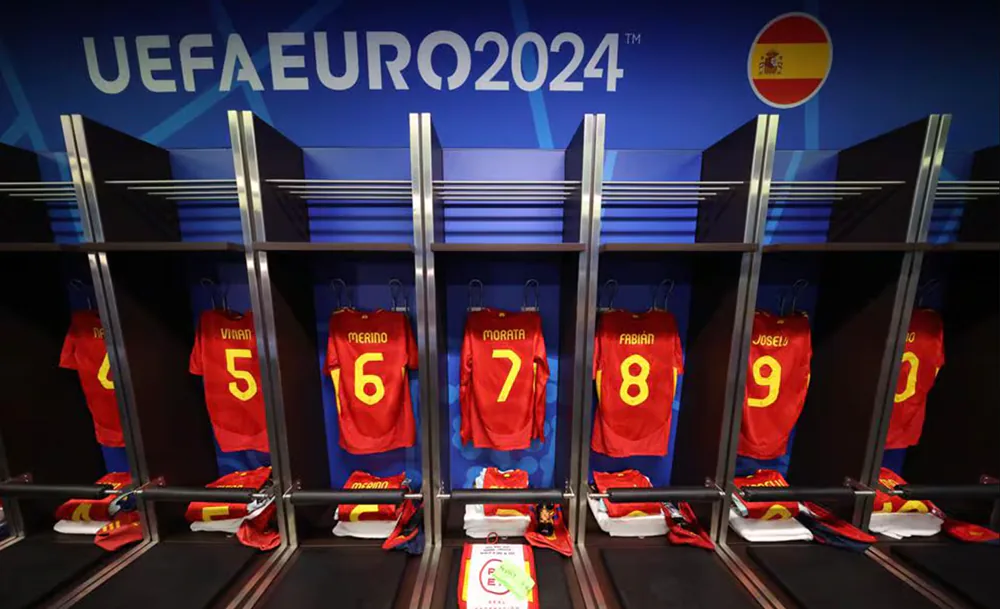 Испания: Симон, Карвахаль, Ле Норман, Начо, Кукурелья, Эрнандес, Руис, Педри, Ямал, Мората, Уильямс.