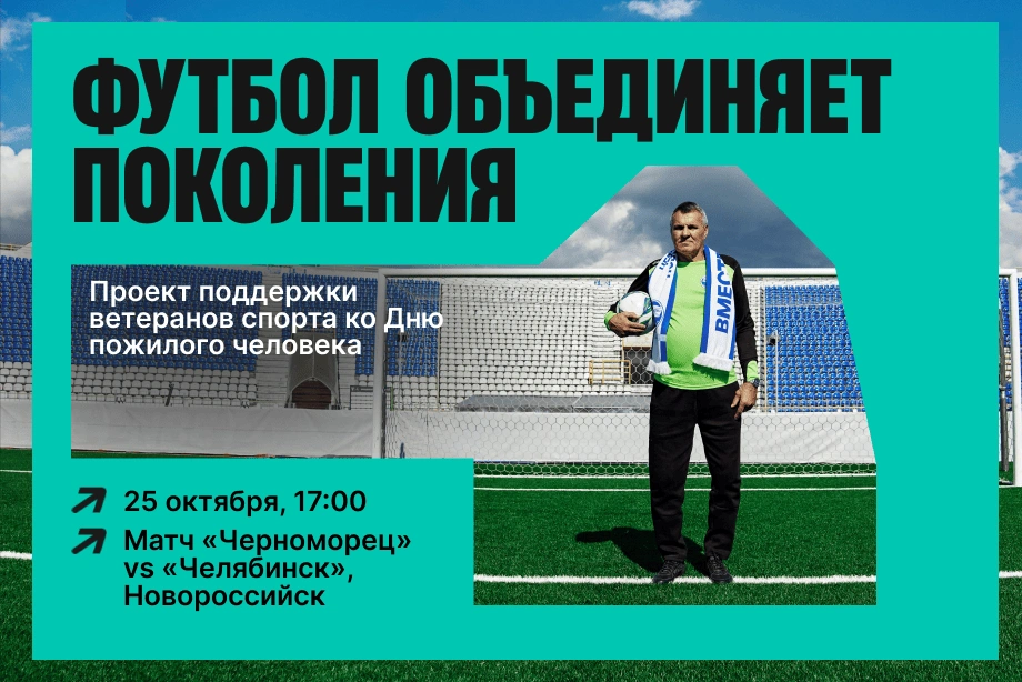 Во время матча 16-го тура Лиги PARI между «Черноморцем» и «Челябинском», который состоится 25 октября, футбольный Новороссийск станет площадкой для социальной инициативы, направленной на поддержку пожилых граждан и бывших спортсменов. Проект реализуется фондом «Пари и побеждай» совместно с Лигой PARI, при участии ФНЛ и платформы Tooba.