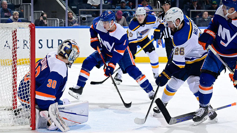«Нью-Йорк Айлендерс» в домашнем матче регулярного чемпионата НХЛ победил «Сент-Луис Блюз» со счётом 4:2.