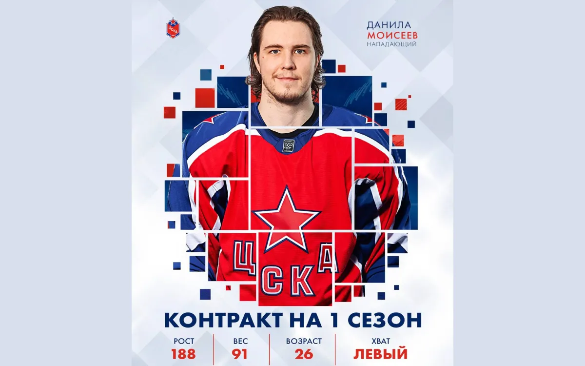 Нападающий Данила Моисеев подписал контракт с московским ЦСКА. Как сообщает пресс-служба столичного клуба, соглашение рассчитано на один год.