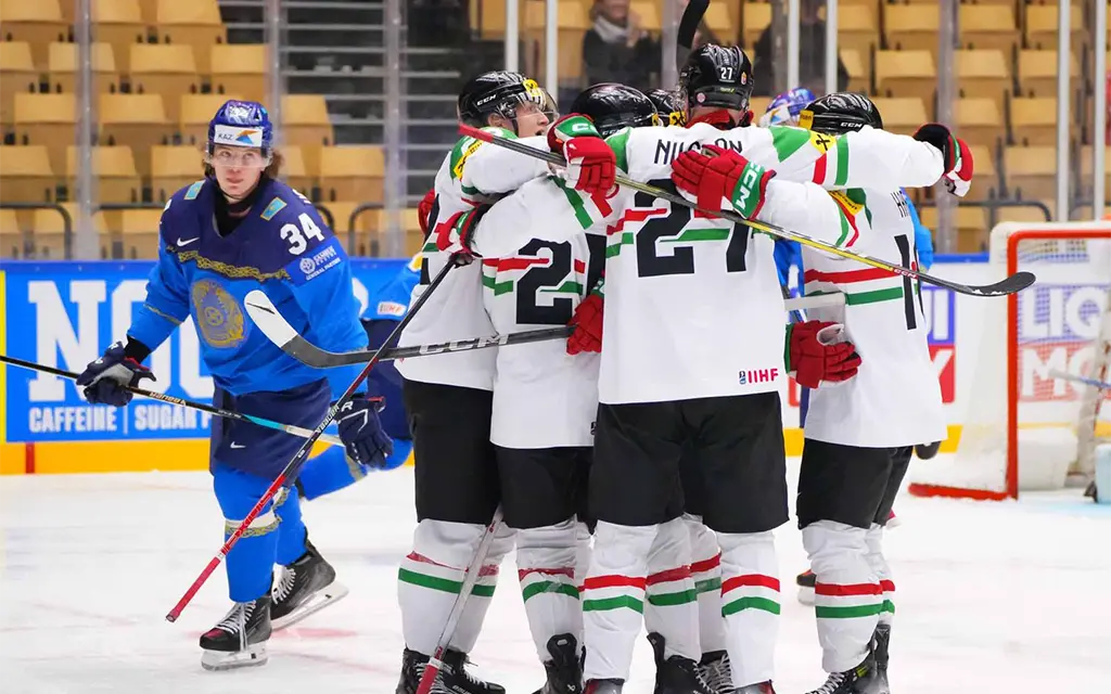 Сборная Венгрии по хоккею победила команду Казахстана в матче третьего тура группового этапа чемпионата мира. Матч в Хернинге (Дания) завершился победой подопечных Гергея Майороша со счётом 4:2.
