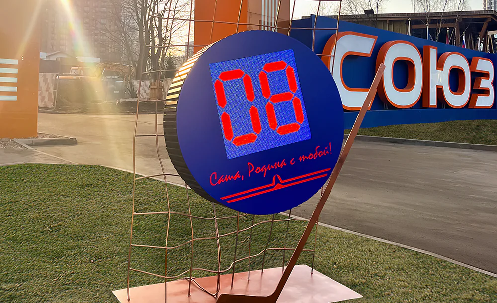 Арт-объект представляет собой хоккейную клюшку и стилизованную сетку с шайбой, на которой установлен экран, показывающий количество голов, необходимых для побития рекорда. Таймер расположен на входе в новый жилой комплекс на северо-востоке столицы.