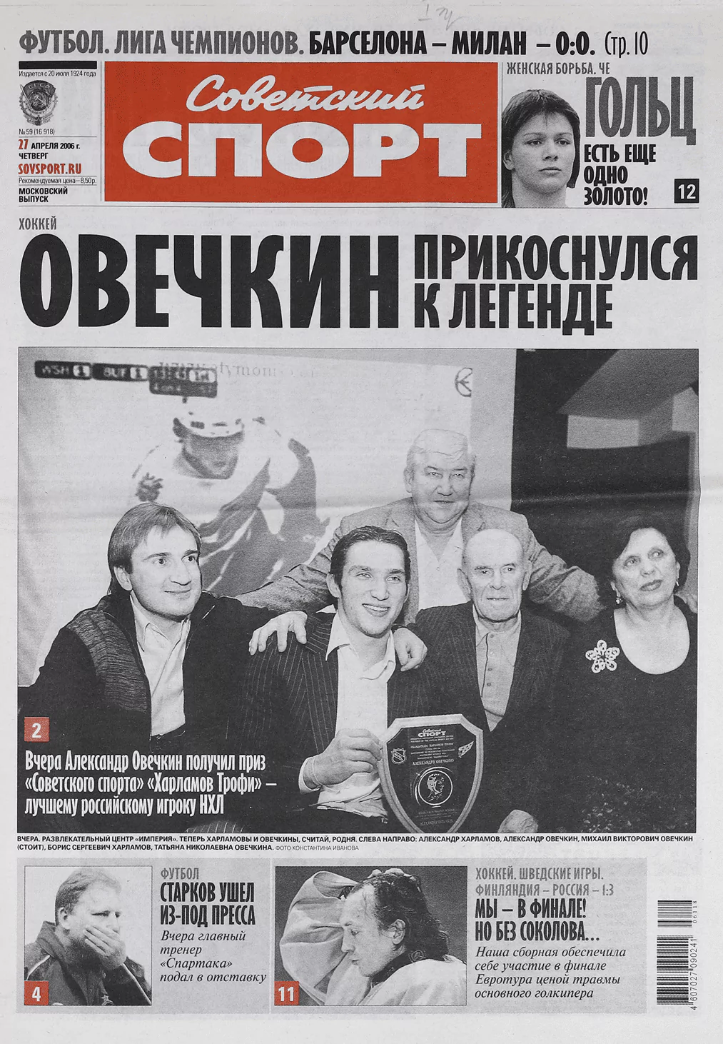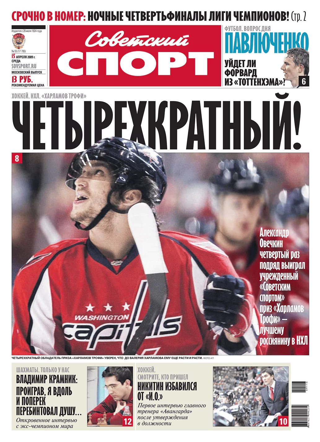 Нападающий «Вашингтона» Александр Овечкин получил свой третий индивидуальный трофей в сезоне-2007/08 – «Харламов Трофи», вручаемый лучшему российскому игроку Национальной хоккейной лиги