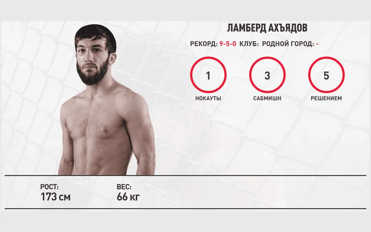 Статистика Ламберда Ахъядова согласно данным сайта АСА ММА
