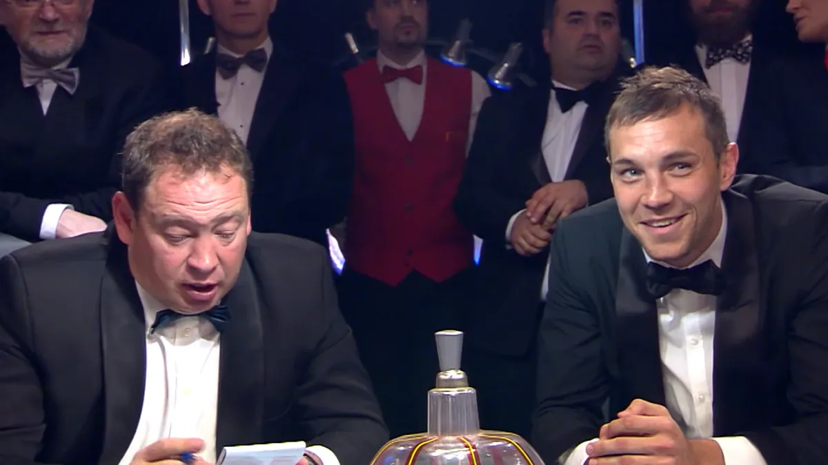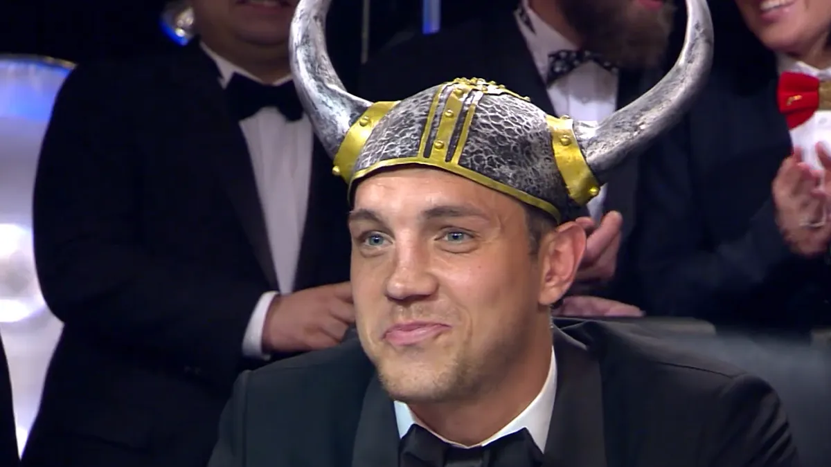 Не сказать, что вопросы были особенно сложными. И всё же выглядели наши парни достойно. Сначала отыгрались, а затем вообще сделали счёт 5:2. Правда, потом замешкались немного — провалились с вопросом об историческом мифе про рогатые шлемы викингов. На Артёма Дзюбу даже надели похожий головной убор. Но в следующем раунде Алексей Березуцкий в очередной раз блестяще сыграл и принёс команде победу 6:4. А радовалась сборная практически как от выигранного матча на Евро.