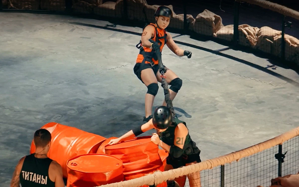 Участники называли это испытание самым ужасным, болезненным и неприятным. Во время трёхстороннего перетягивания каната спортсменам нужно было выкинуть за барьер по пять бочек нужного цвета.