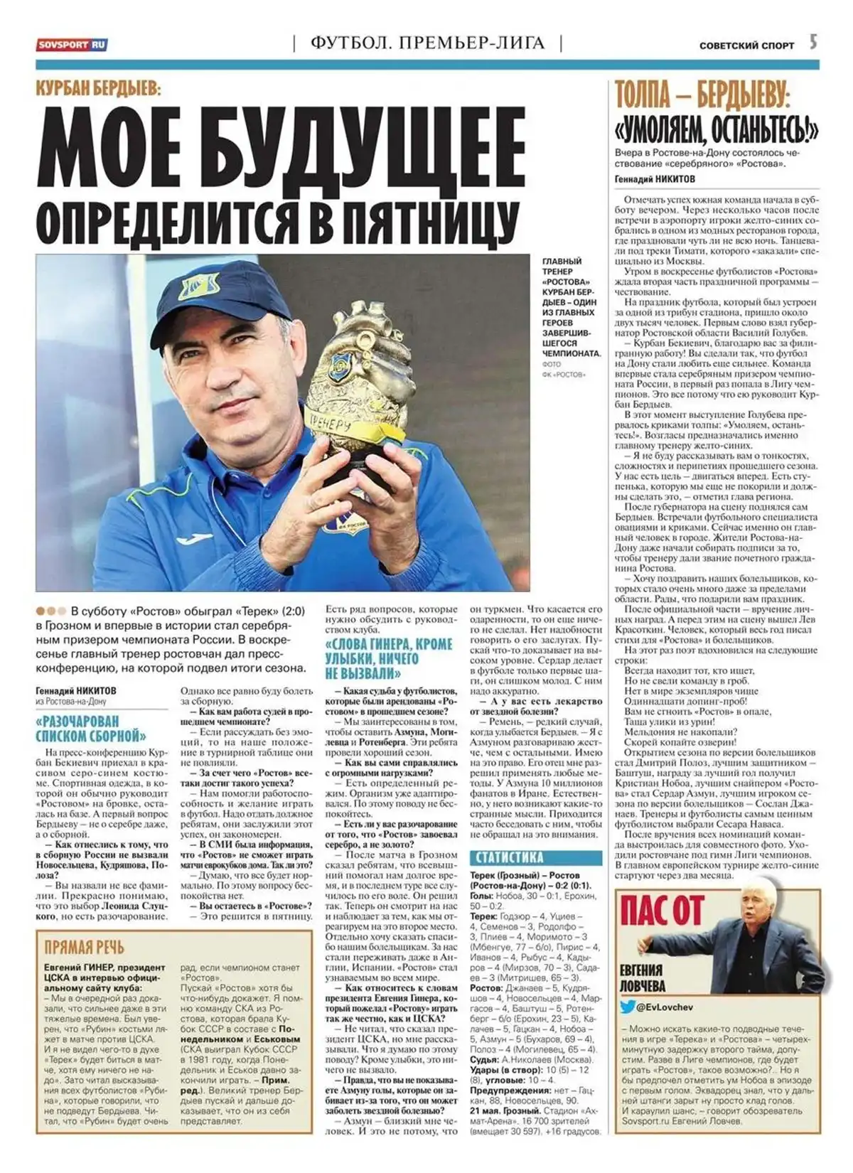 При этом у клуба ещё и были огромные финансовые проблемы. Но это не помешало Курбану Бердыеву собрать мощную команду, которая за второй круг обыграла двух главных конкурентов за титул: ЦСКА и «Зенит». Чемпионство взять не получилось, «Ростов» боролся за него до последнего тура. Но в сердцах болельщиков та команда точно останется.