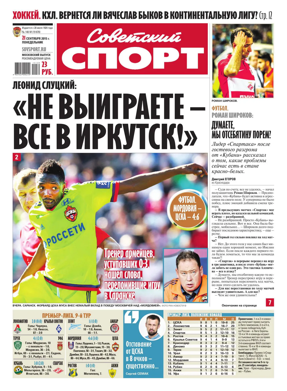 И получилось ведь! ЦСКА пропустил три безответных гола к 15-й минуте. На 12-й минуте ещё и удалился Марио Фернандес. Катастрофа. В перерыве Слуцкий в качестве мотивации погрозил игрокам поездкой в Сибирь в случае потери очков: «Если не выиграете, отправитесь все в Иркутск». ЦСКА после «Мордовии» должен был лететь на выезд к иркутскому «Байкалу» играть 1/16 финала Кубка России. Планировалось отправить на матч резервистов.