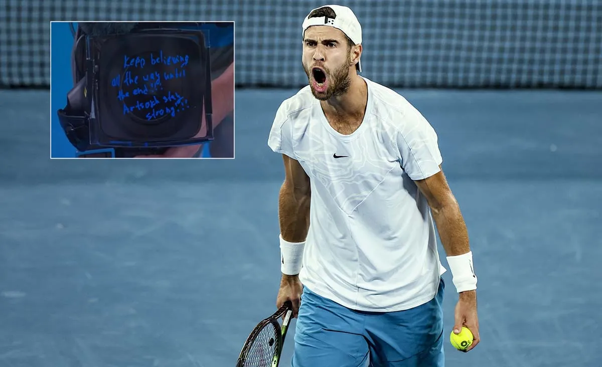 В теннисе есть традиция оставлять на камере надписи разного характера. Это и автографы, и шутки, и обращения к близким, и пожелания здоровья сопернику, и колкие высказывания в адрес зрителей, и многое другое. Хачанов же решил воспользоваться ритуалом по-своему.