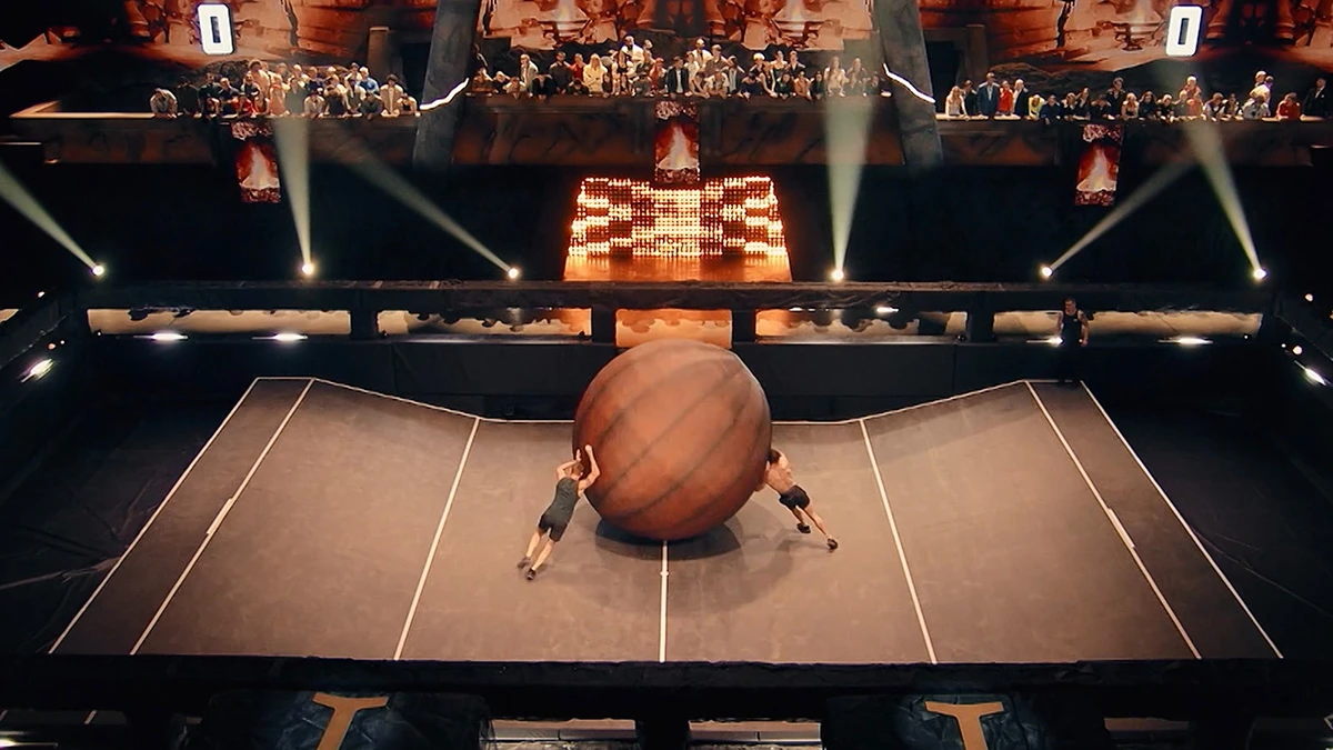 Испытание суперфинала – «Титанический футбол». Спортсмены должны были вытолкнуть громадный мяч за пределы половины поля соперника наибольшее количество раз. Вес снаряда составлял 50 кг, а его диаметр – 3 метра. Состязание продолжалось до пяти побед.