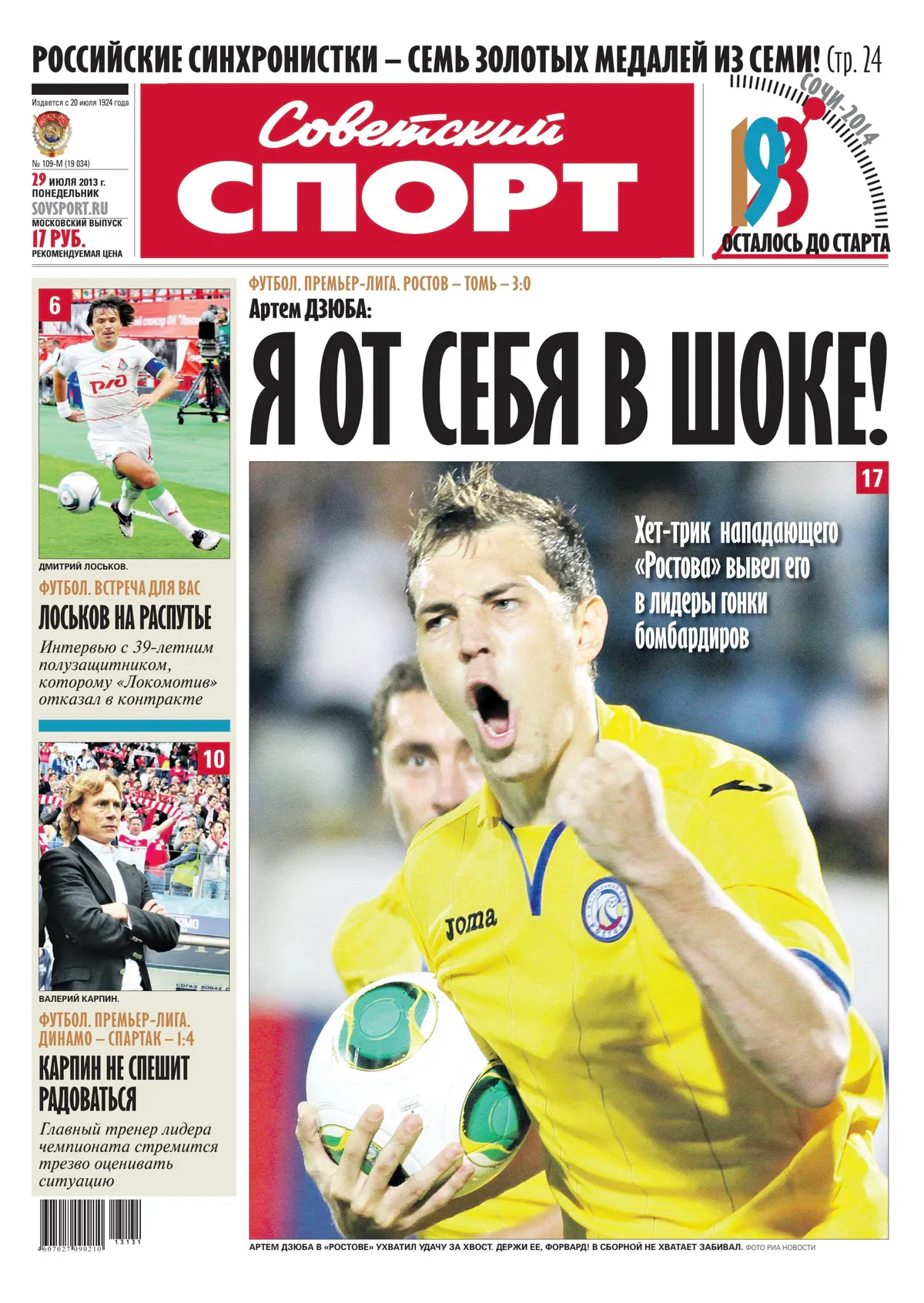 27 июля в поединке против «Томи» Артём сделал хет-трик и возглавил список лучших бомбардиров чемпионата. Всего в первых пяти матчах за «Ростов» в чемпионате России забил семь мячей. По итогам сезона Дзюба с 17 мячами стал вторым бомбардиром чемпионата, уступив лидерство ивуарийскому нападающему ЦСКА Сейду Думбия.