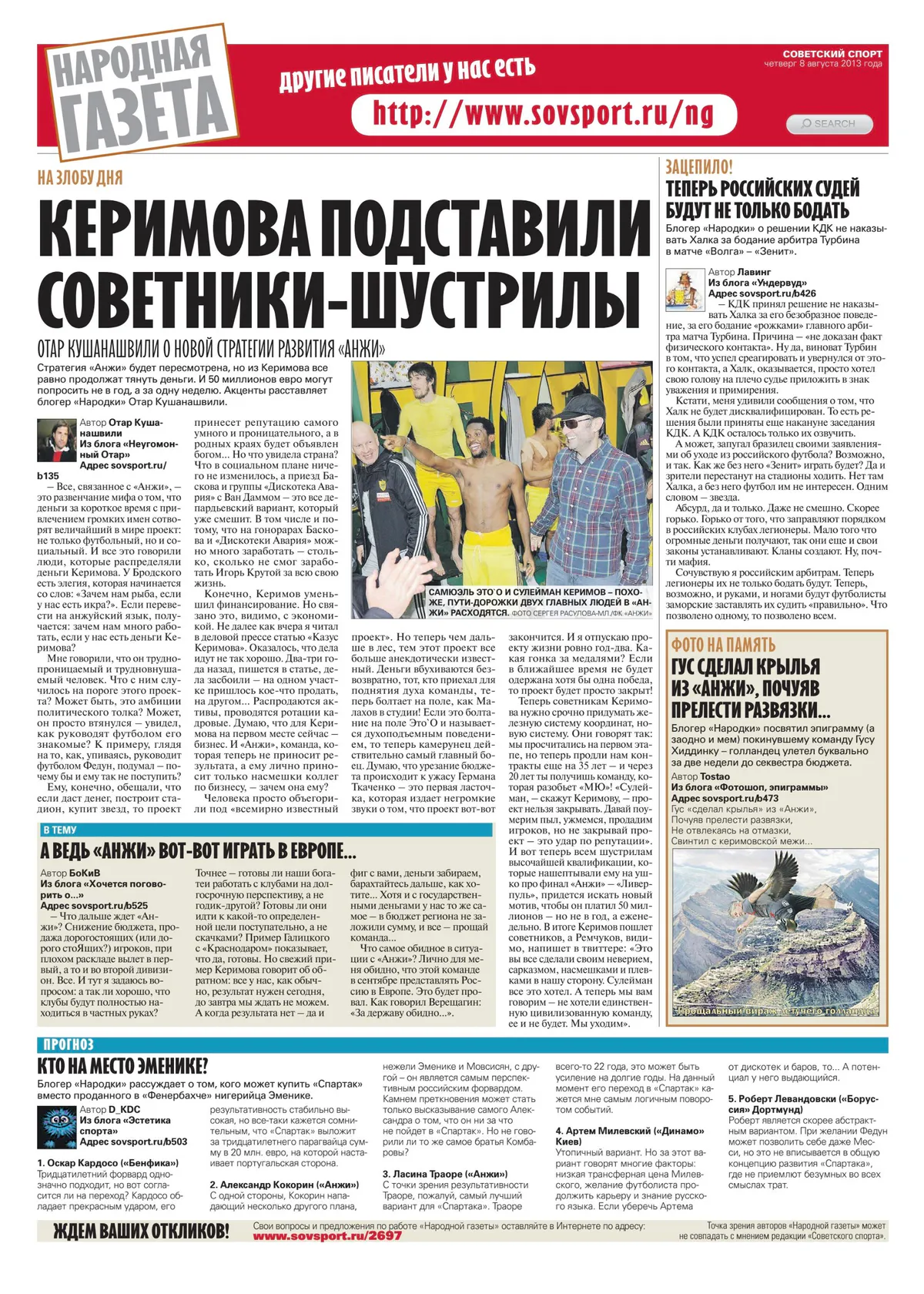 — Сулейман собрал нас с Гариком, Юрой и Володей (Габулов — Прим. «Совспорта»). Сказал, что хотел бы, чтобы мы перешли в «Динамо». Других вариантов не было. Мы вчетвером решили, что если уйдем, то уйдем все вместе. Никто даже не стал бы слушать никаких предложений. Их и не было, никто же тогда ещё не знал о ситуации в «Анжи», — рассказывал Кокорин в интервью Нобелю Арустамяну.