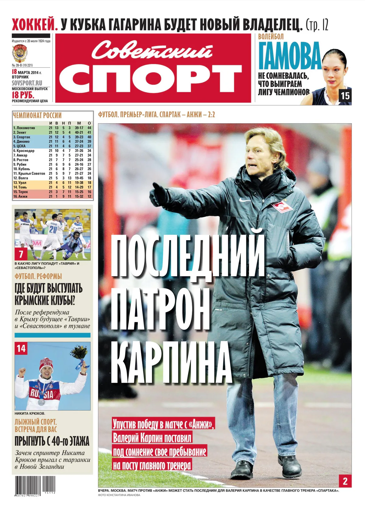 Весна 2014-го в РПЛ была богата на отставки. После увольнения Лучано Спаллетти активизировалось руководство «Спартака». Там в марте с поста главного тренера убрали Валерия Карпина.